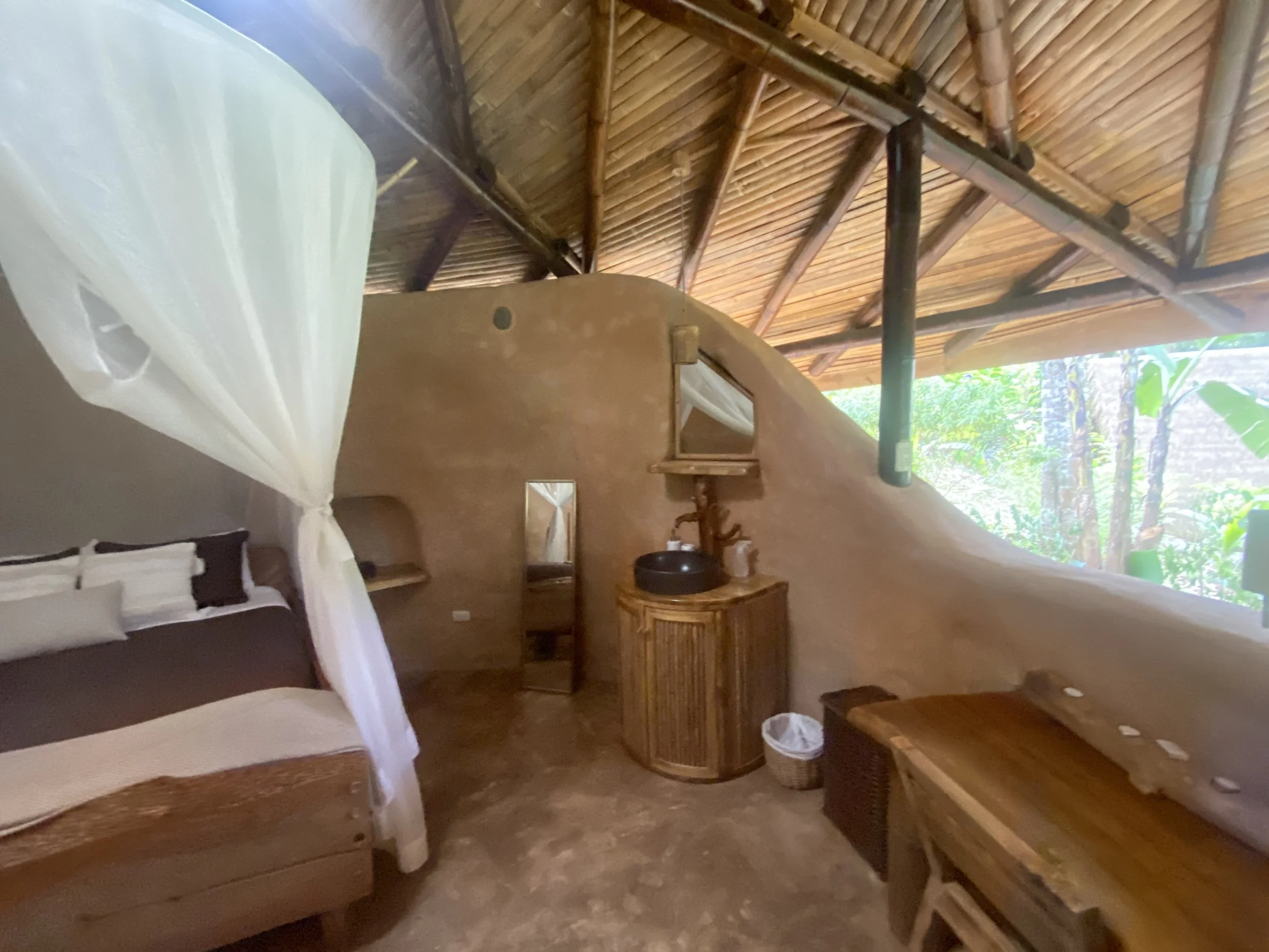 Look, I get it. Every accommodation’s website is there to showcase the place at its best. We had booked a so-called Earth Tambo room. The website says “The Earth walls and floors give the space a very grounding feeling and inspire a deep stillness.”